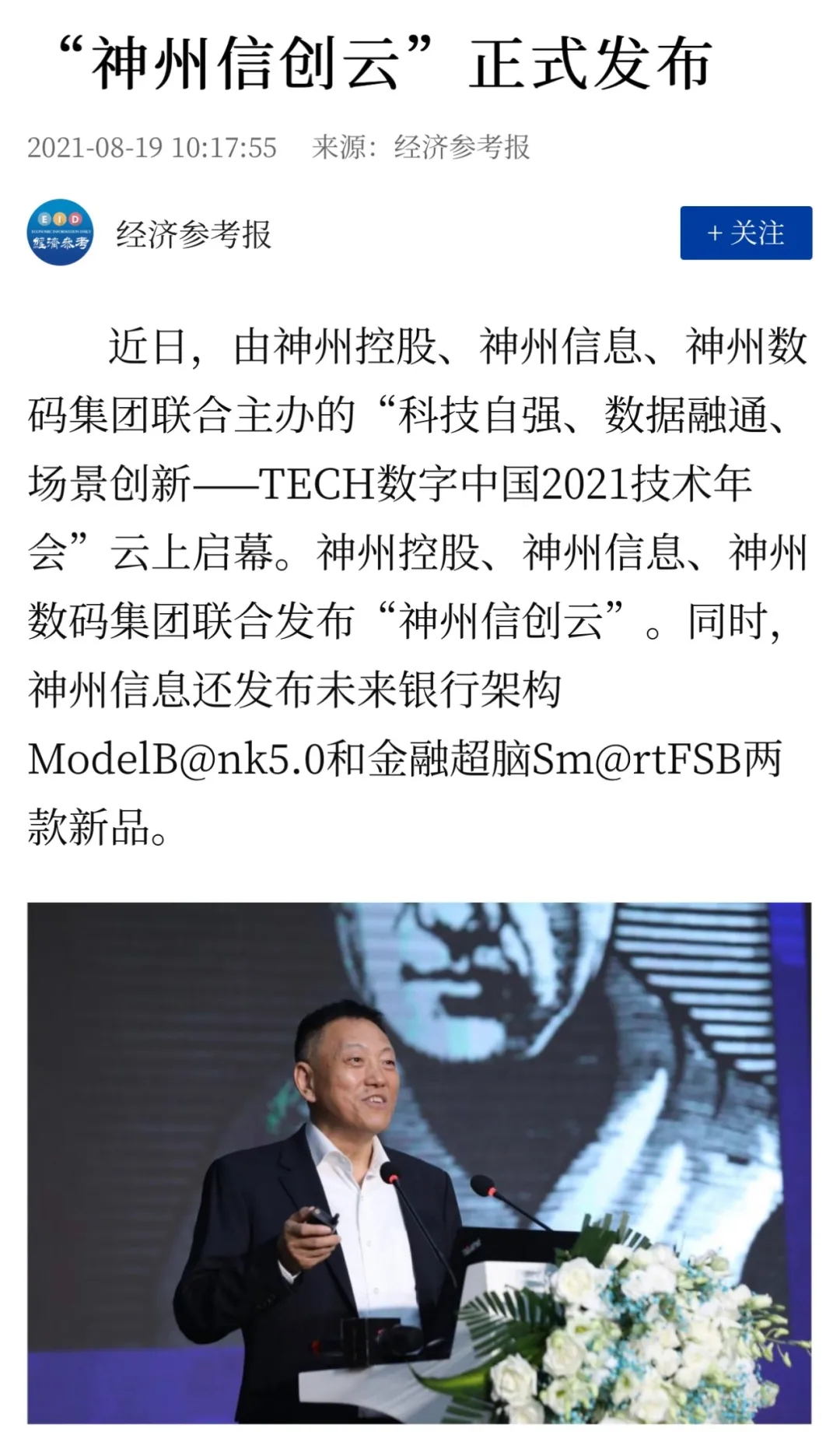 神州信息发布金融超脑Sm@rtFSB和ModelB@nk5.0