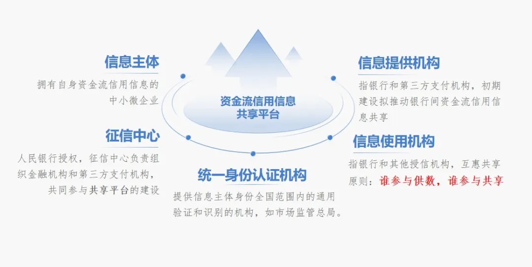 2023年,人民银行征信中心为贯彻落实国务院办公厅关于“进一步释放消费潜力促进消费持续恢复的意见”,正式启动“全国中小微企业资金流信用信息共享平台”建设工作(简称:资金流信息共享平台)。共享平台作为国家金融基础设置组成,不仅是人民银行探索企业资金流信息开放共享方式的重要举措,更是健全普惠金融信用共享机制重要支撑。